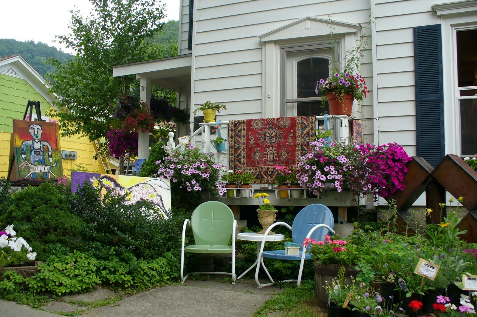Beautiful cool weather today. I'm hoping to get outside and play in the garden. Should be nice for the next several days, but I'll be inside all day tomorrow and pretty much tied up Friday. I'm planning to go to Homestead Gardens on Friday, after lunch, and buy a crape myrtle. Supposedly they will have lots of them for sale and I can find one small enough that I can actually get it out of my car and around back to be planted. My other project that I hope to work on is making some stepping stones out of concrete. My friend Deb gave me some directions and stuff and all I have to do is buy cement and get to work. Today would be ideal, but I can't leave home until Verizon comes and does their thing. Hopefully, that will happen soon. The photo shows the morning glories climbing up the lilies, rather than on the trellis. Perhaps they will find the trellis before the summer is over! Morning glories reseed each year and come up everywhere, except where one wants them. Oh well, they are lovely when they bloom.